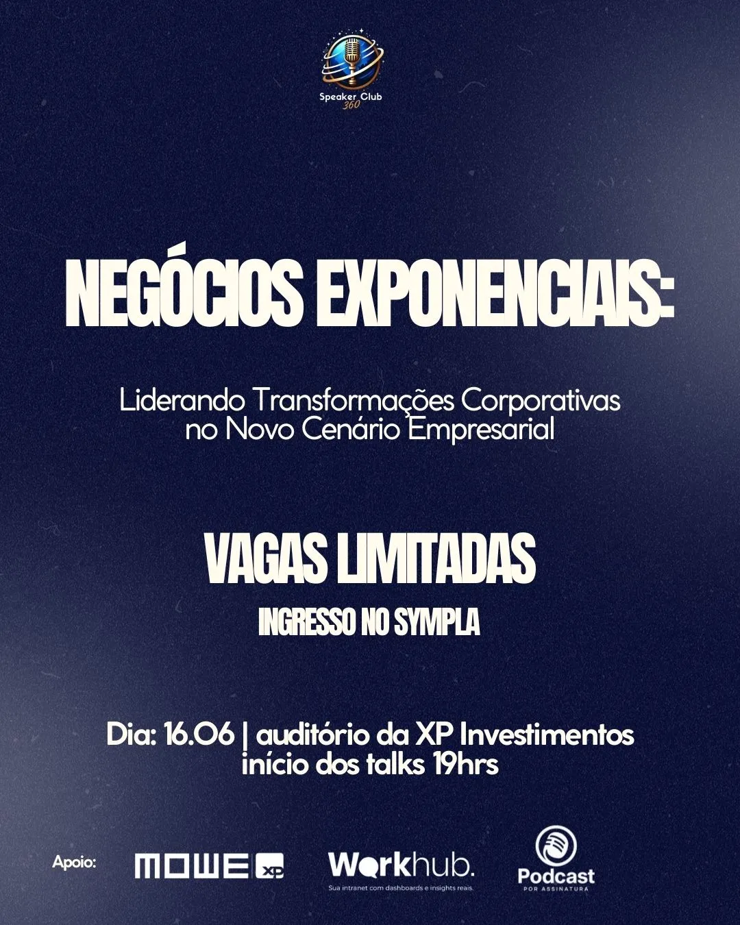 No dia 16/06, no auditório da XP Investimentos, grandes nomes do mercado estarão juntos no evento Negócios Exponenciais.